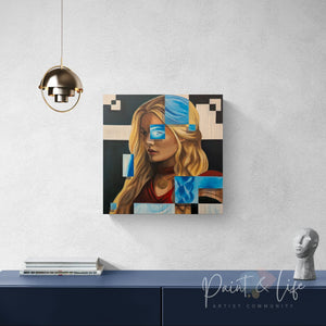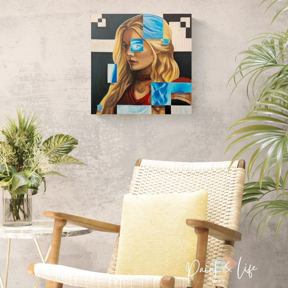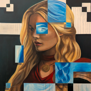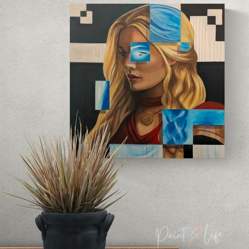 Tags:contemporary female portrait, contemporary figurative painting, contemporary realism and abstraction, cultural identity portrait art, fragmented portrait art, geometric portrait painting, modern fine art portrait, Nordic portrait painting, Scandinavian portrait art, symbolic portrait painting